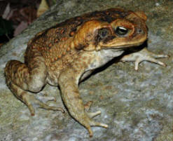 Cane Toads are a threat to frogs through competition for food and breeding sites and they also predate on tadpoles and small frogs.